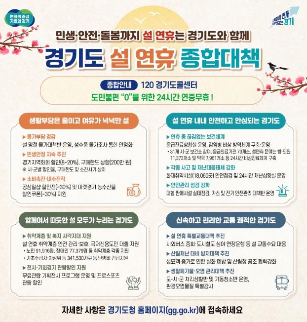 【뉴스라이트 = 조용은 기자】 경기도가 도민들이 따뜻하고 편안한 명절을 보낼 수 있도록 ‘설 연휴 종합대책’을 추진한다.