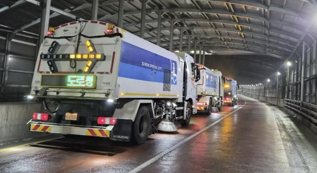 【뉴스라이트 = 조용은 기자】 수원시 영통구는 지난 11일 설 명절을 맞아 귀성객들에게 쾌적하고 안전한 도로 환경을 제공하기 위해 주요 도로 구간에 대한 노면 청소차량 합동 작업을 실시했다.