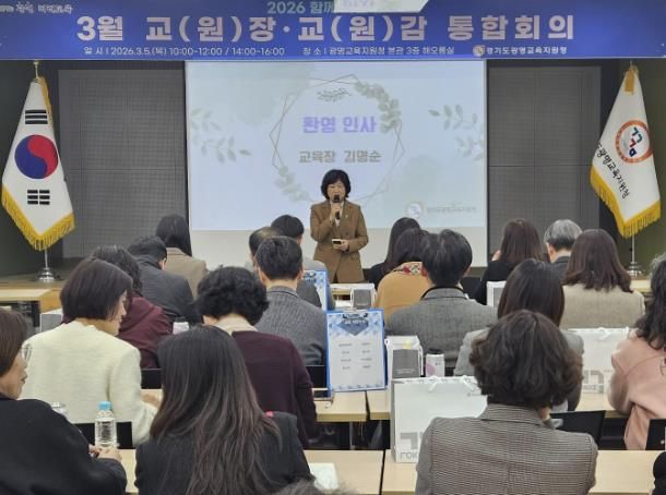 【뉴스라이트 = 이양지 기자】 경기도광명교육지원청은 3월 5일, 광명교육지원청 3층 해오름실에서 2026 해오름 광명교육과 경기미래교육 구현을 위한 ‘2026년 3월 교(원)장, 교(원)감 통합회의’를 운영했다. 이번 통합회의는 학년 초 학교와 교육지원청, 도교육청 간의 협력을 강화하고, 학교 중심의 교육정책, 미래장학, 교육과정운영의 선순환 체제를 통해 학교 중심 행정 지원의 기틀을 마련하고자 진행됐다.
