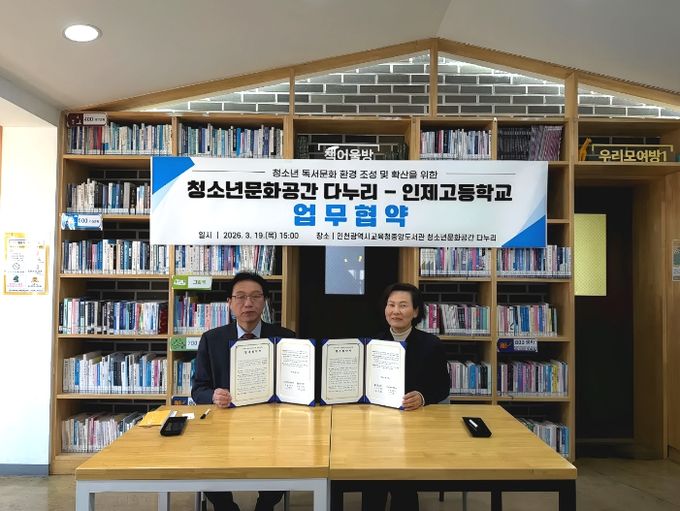 【뉴스라이트 = 이세현 기자】 인천광역시교육청중앙도서관 청소년문화공간 다누리는 19일, 인제고등학교와 ‘청소년 독서문화 환경 조성 및 확산을 위한 업무협약’을 체결했다.