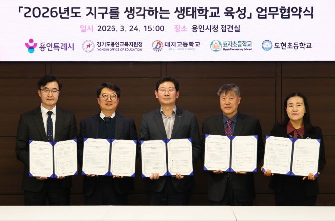 【뉴스라이트 = 박현서 기자】 용인특례시는 24일 시청 접견실에서 용인교육지원청을 비롯해 3개 학교와 ‘지구를 생각하는 생태학교 육성사업’을 위한 협약을 맺었다.