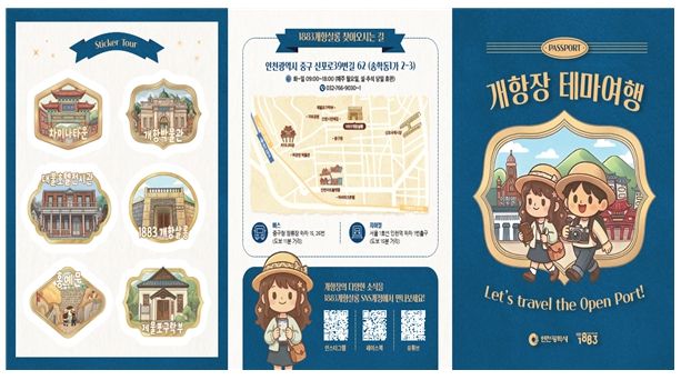 특히 가을 홍보물에는 1883개항살롱 사회관계망(SNS) 공모를 통해 선정된 시민 추천 개항장 걷기 코스를 반영해 시민과 함께 만드는 홍보물이라는 의미를 담았다. 이러한 성과를 바탕으로 올해는 단순한 걷기 코스 안내를 넘어 ‘개항장 테마여행’ 주제로 홍보물을 새롭게 제작했다. 또한 여행 주제를 살려 실제 여권을 연상시키는 디자인으로 제작한 것이 특징이다.
