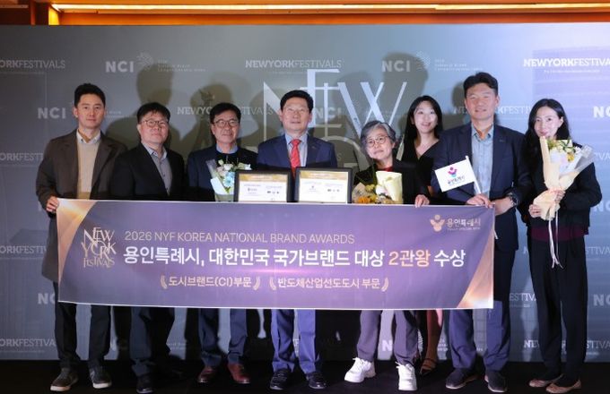 【뉴스라이트 = 박현서 기자】 용인특례시가 칸 국제광고제, 클리오광고제와 함께 세계 3대 광고제로 꼽히는 뉴욕페스티벌(NYF)이 주관하는 ‘2026 뉴욕페스티벌 대한민국-국가브랜드 대상’(NYF K-NBA)에서 도시브랜드(CI) 부문과 반도체산업 선도 도시 부문 1위로 선정됐다.