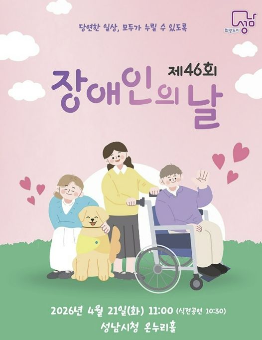 【뉴스라이트 = 김정민 기자】 성남시는 ‘제46회 장애인의 날(4.20)’을 맞아 오는 4월 21일 오전 11시 시청 1층 온누리에서 기념식을 연다.