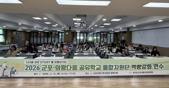 【뉴스라이트 = 이양지 기자】 군포의왕교육지원청은 2026년 군포의왕다움 공유학교 운영의 내실화를 위해 4월 16일 ‘통합 지원단 역량강화 워크숍’을 운영하며, 지역 기반 교육 혁신을 선도할 전문 지원체계 구축에 나선다.