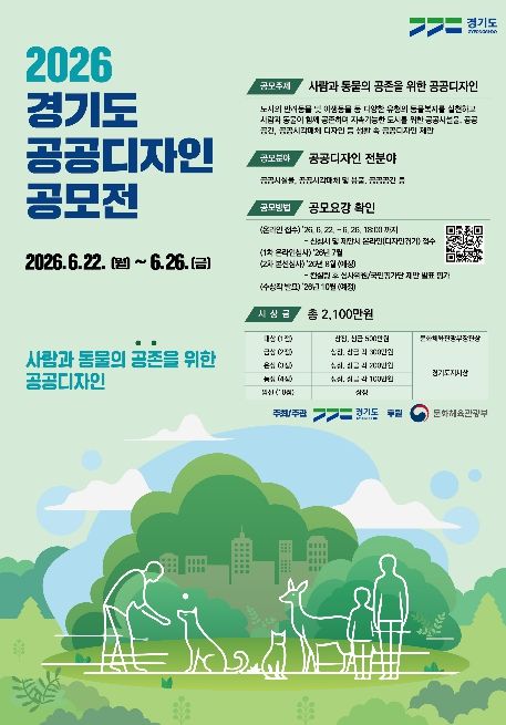 【뉴스라이트 = 조용은 기자】 경기도가 ‘사람과 동물의 공존을 위한 공공디자인’이란 주제로 제20회 ‘2026년 경기도 공공디자인 공모전’을 6월 22일부터 26일까지 개최한다.