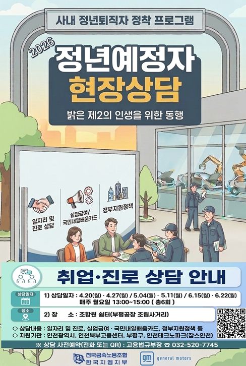 한국지엠 부평공장은 올해 정년에 도달하는 1966년생을 시작으로 오는 2032년까지 약 1,750여 명의 근로자가 순차적으로 퇴직할 예정인 만큼, 체계적인 진로 설계와 재취업 지원이 필요한 상황이다.
