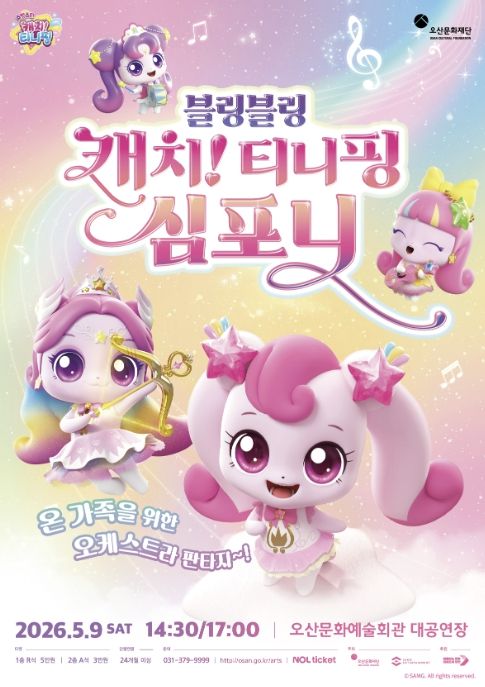 【뉴스라이트 = 조용은 기자】 오산문화재단은 어린이날을 맞아 온 가족이 함께 즐길 수 있는 오케스트라 공연 ‘블링블링 캐치! 티니핑 심포니’를 선보인다고 밝혔다. 이번 공연은 인기 애니메이션 ‘캐치! 티니핑’ 시리즈의 OST를 오케스트라 라이브로 감상할 수 있는 무대로, 어린이뿐 아니라 가족 단위 관람객들에게 특별한 문화 경험을 제공할 예정이다.