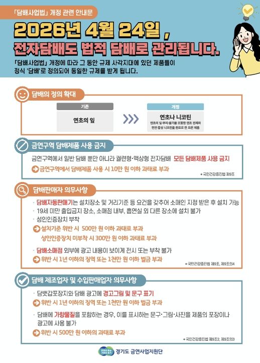 이번 점검은 개정 법령에 따라 ‘연초 또는 니코틴’을 원료로 제조한 모든 제품이 담배의 정의에 포함됨에 따라, 금연구역 내 해당 제품의 사용을 원천 차단하고 시민들의 간접흡연 피해를 예방하기 위해 마련됐다.