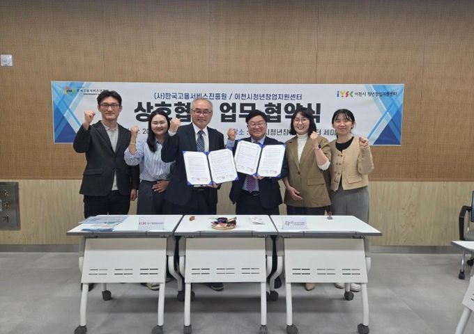 【뉴스라이트 = 김정민 기자】 이천시는 청년 취업 및 창업 지원 강화를 위해 사단법인 한국고용서비스진흥원과 이천시 청년창업지원센터가 지난 4월 15일 센터 세미나실에서 업무협약(MOU)을 체결했다고 밝혔다.