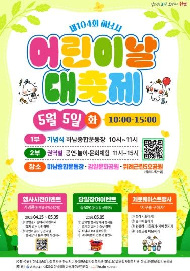 【뉴스라이트 = 김정민 기자】 하남시는 2026년 제104회 어린이날을 맞아 오는 5월 5일, 어린이와 가족이 함께 즐길 수 있는 ‘제104회 하남시 어린이날 대축제’를 개최한다.