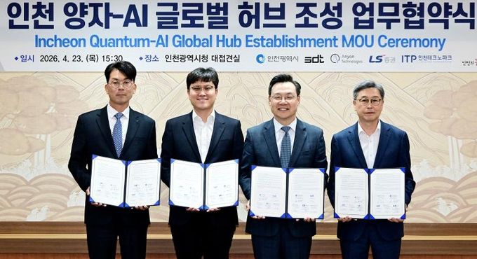 【뉴스라이트 = 이세현 기자】 인천광역시는 ㈜에스디티(이하 ‘SDT’), 미국 Anyon Computing(이하 ‘Anyon’), LS증권, 인천테크노파크와 함께 ‘양자-AI 글로벌 허브 조성’을 위한 업무협약(MOU)을 체결했다고 밝혔다.