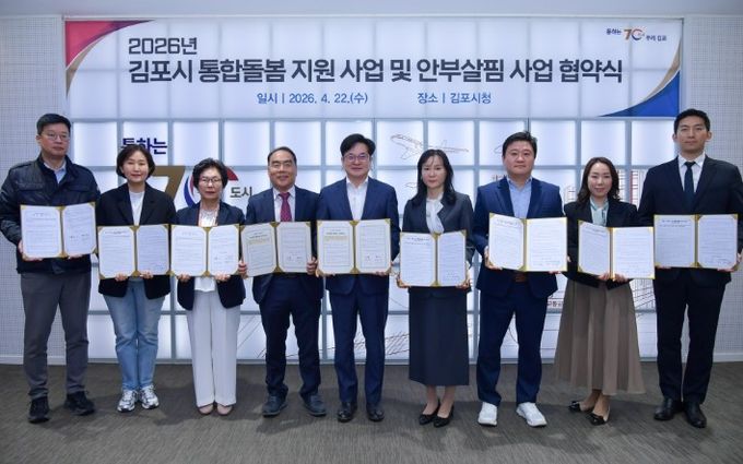 【뉴스라이트 = 이세현 기자】 김포시가 일상생활 서비스 제공기관 6개소, 관내 종합 병원 2개소, 김포시 우체국과 함께 김포시 통합돌봄사업 및 안부살핌 사업 추진을 위한 업무협약을 22일 체결했다. 이번 업무협약은 '돌봄통합지원법'시행에 발맞춰 돌봄이 필요한 65세 이상 노인을 대상으로 시행하는 것으로, 가사·식사 지원, 목욕 및 이동 등 생활에 필수적인 서비스부터 고립 예방까지 체계적 지원이 이뤄질 것으로 기대된다.