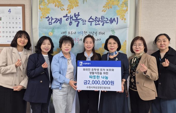 수원시 여성경영인협의회는 추가적인 생활 지원을 위해 임원진의 뜻을 모아 기부금을 마련했다. 기부금은 해당 유학생의 생활 안정 지원 등에 사용할 예정이다.