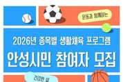 【뉴스라이트 = 박현서 기자】 안성시는 시민 누구나 일상에서 부담 없이 운동을 즐길 수 있도록 ‘2026 종목별 생활체육 프로그램’을 운영하고, 4월부터 참가자를 모집 중이라고 밝혔다. 이번 프로그램은 오는 7월까지 안성시 관내 종목별 체육시설에서 진행된다. 육상, 수영, 배드민턴 등 총 30개 종목이 마련되어 있어 시민들은 자신의 관심사와 체력 수준에 맞는 운동을 자유롭게 선택할 수 있다. 특히 참가비가 전액 무료로 운영되어 경제적 부담 없이 참여할 수 있는 점이 큰 장점이다. 운동을 처음 시작하는 입문자도 쉽게 적응할 수 있도록 기초 실무 위주로 구성됐으며, 다만 일부 종목에 한해 장비 대여 등 최소한의 자부담 비용이 발생할 수 있다. 참여 대상은 운동에 관심 있는 안성시민 누구나 연령과 경험에 관계없이 신청 가능하다. 모집은 종목별 정원에 따라 선착순으로 진행되며, 종목별 담당자에게 직접 문의하거나 안성시체육회 안내를 통해 신청하면 된다. 안성시 관계자는 “생활체육은 건강한 삶을 유지하기 위한 가장 쉽고 확실한 방법”이라며, “이번 프로그램을 통해 많은 시민이 일상 속에서 운동의 즐거움을 찾고