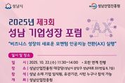 【뉴스라이트 = 김정민 기자】 성남산업진흥원은 오는 10월 22일 11시 30분부터 ‘인공지능 전환 실행 전략’을 주제로 2025년 제3회 ‘성남기업성장포럼’을 개최한다. 이번 포럼은 성남시 중소기업의 성공적인 ‘인공지능 전환(AI Transformation)’을 실질적으로 지원하기 위해 마련됐다. ‘성남기업성장포럼’은 매회 성남시 중소기업이 직면한 경영환경 변화 이슈를 주제로 선정하여 개최되고 있다. 올해는 제1회 ‘기후테그 비즈니스 새로운 성공전략’, 제2회 ‘세계교질서 변화와 맞춤형 경영전략’ 등 두 차례 개최됐고, 14개 유관기관과 300여명의 기업인이 참여했다. 포럼 참가는 성남시 소재 기업인이면 누구나 가능하고, 성남산업진흥원 홈페이지를 통해 참가 신청을 할 수 있으며 행사 당일 현장 등록도 가능하다. 포럼에서는 한국산업기술진흥원 곽용원 첨단산업공급망단 단장이 정부의 ‘인공지능 전환’ 지원정책과 지원사업을 소개하고, 최재식 ㈜인이지 대표이사(카이스트 교수, 국가인공지능전략위원)가 ‘인공지능 전환’을 통한 비즈니스 혁신 사례와 구체적인 실행 전략을 제시할 예정이다. 본행사에 앞서 열리는 ‘