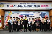 【뉴스라이트 = 김정민 기자】 여주시에서는 지난 11월 25일 농업기술센터 대회의실에서 제24기 여주21C농업인대학 졸업식을 성황리 개최했다. 이날 행사에는 이충우 시장을 비롯해 농업 관련 기관장 및 단체장, 농업인대학 총동문회 임원, 졸업생 가족 등 약 100명이 참석하여 졸업생들을 축하했다. 올해 여주21C농업인대학은 청년스마트농업과, 생명농업과, 치유농업과 3개 과정으로 운영됐으며, 3월부터 11월까지 총 25회 100시간에 걸쳐 전문 강사진 지도 아래 각 과정별 특성에 맞는 이론·실습·현장교육을 추진했다. 이날 졸업식에는 89명의 졸업생이 배출됐으며 청년스마트농업과 정용우 회장이 농촌진흥청장상을 생명농업과 백광현 회장, 치유농업과 김용규 회장이 공로상을 수상하는 등 총 7개분야에서 24명의 졸업생이 수상하는 영예를 안았다. 이충우 시장은 ‘변화하는 농업에 대항하기 위해 스마트팜 보급 확대, 농업기술 교육강화, 치유농업 기반 조성 등 미래 농업 육성 정책을 적극적으로 추진하겠다’라며 인사말을 전했다. 2002년부터 시작된 여주21C농업인대학은 농업을 이끌어갈 유능한 인재를 발굴하고 전문기술과