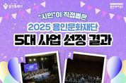 【뉴스라이트 = 박현서 기자】 용인문화재단은 시민 참여 온라인 투표를 통해 ‘시민이 선정한 2025년 용인문화재단 5대 사업’을 발표했다. 이번 투표는 재단이 2025년 한 해 동안 추진한 공연·축제·문화공간 운영 등 주요 사업 가운데 시민이 공감하고 체감하며 높은 호응을 얻은 사업을 직접 선정하는 방식으로 진행됐다. 재단은 시민 참여형 투표를 통해 사업에 대한 인식과 선호도를 확인하고 이를 향후 사업 운영에 참고하고자 이번 투표를 마련했다. 투표는 2026년 1월 28일부터 2월 3일까지 7일간 온라인 방식으로 운영됐으며, 용인 시민을 포함해 누구나 참여할 수 있도록 개방형으로 진행됐다. 그 결과 총 1,861명이 참여하며 재단 주요 사업에 대한 시민 관심과 참여 열기를 확인할 수 있었다. 투표 결과 선정된 ‘2025년 용인문화재단 5대 사업’은 ▲‘1,525석으로 다시 열다’ 용인포은아트홀 리뉴얼 재개관 ▲‘대형 공연이 찾아오는 공연장’ 용인포은아트홀 공연 경쟁력 강화 ▲‘시민이 기획하고 시민이 완성한 축제’ 조아용 시민 퍼레이드 ▲‘도심을 문화로 채우다’ 가을 별빛 콘서트 & 어텀라운지페스티벌 ▲‘경기 남