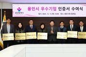 【뉴스라이트 = 박현서 기자】 용인특례시는 11일 시청 접견실에서 ‘2025년 용인시 우수기업 인증제’ 심의 결과 선정된 ‘올해의 우수기업’ 10개 사에 인증서를 전달했다. 이상일 용인특례시장은 이들 기업 대표와 임직원들을 만나 축하와 격려 인사를 나누고 우수기업 인증서와 현판을 전달했다. 이상일 시장은 “우리 경제가 어려운 가운데서도 기업 활동을 잘 해주셔서 우수기업으로 선정된 것을 축하드린다”며 “각자 분야에서 그동안 많은 노하우를 쌓아왔기에 경제가 어려운 가운데서도 성과를 냈고, 우리 지역 경제에도 큰 보탬이 돼 주셔서 감사드린다”고 말했다. 이 시장은 “기업 활동으로 한 가족의 가장은 힘을 얻어 가정을 잘 꾸려갈 수 있고, 신규 일자리를 찾는 사람에게는 희망을 주셨다”며 “기업인들이 활동하실 수 있도록 환경을 잘 개선해 나갈 것”이라고 했다. 시는 매년 경영 실적, 기술·품질 경쟁력, 지역사회 기여도 등 다양한 지표를 종합 평가해 지역경제 발전에 기여한 중소기업을 우수기업으로 인증하고 있다. 올해 선정된 기업은 ▲㈜대성티엠씨 ▲신명이엔씨㈜ ▲주식회사 에이드로 ▲㈜에이치에스씨엠티
