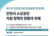 【뉴스라이트 = 이세현 기자】 인천연구원은 2026년 3월 9일 오후 3시 인천광역시사회적경제지원센터 세미나실에서 “인천시 소상공인 지원 정책의 현황과 과제”라는 주제로 '제11차 현장동행 정책대화'를 개최한다. 이 행사는 어려움 속에서 변화의 시기를 맞이하고 있는 인천시 소상공인의 현황을 점검하고 지원 정책의 방향성을 논의하기 위해 마련됐다. 첫 번째 발표는 인천연구원 유근식 연구위원이 “인천시 소상공인 생태계 현황 진단”을 주제로, 두 번째 발표는 인천소상공인종합지원센터 유지원 센터장이 “인천 소상공인 지원 사업 성과 분석 및 정책 제언”을 주제로, 세 번째 발표는 중소기업중앙회 김민석 차장이 “인천 소상공인의 은퇴‧폐업 준비 현황 및 폐업 애로사항”이라는 주제로 발표한다. 이어지는 종합토론에서는 인천소공인협회 오승섭 이사장, 인천소상공인연합회 지주현 사무처장 등으로 구성된 소상공인 대표자들과 인천광역시 소상공인정책과 이상은 과장 등을 비롯한 정책관계자 간의 토론이 진행될 예정이다. 이 행사는 정책의 수요자인 소상공인과 인천시, 인천연구원, 인천소상공인종합지원센터, 인천신용보증재단, 중소기업중
