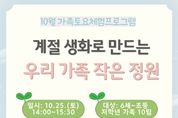 【뉴스라이트 = 이세현 기자】 인천광역시교육청연수도서관은 오는 10월 25일 오후 2시 평생학습1실에서 가족 이용자를 위한 ‘10월 가족 토요체험 프로그램’을 운영한다. 이번 프로그램은 ‘우리 가족 마음 정원’을 주제로 가을의 정취를 담은 그림책을 함께 읽으며 가족의 마음을 돌아보고 함께 소통하는 시간을 갖는다. 이어지는 원예 활동에서는 계절 생화를 활용해 가족의 작은 정원을 만들며 자연과 감성을 나눌 예정이다. 참여 신청은 10월 13일부터 연수도서관 누리집에서 선착순 접수하며, 자세한 내용은 연수도서관 독서문화과 로 문의하면 된다.