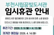 【뉴스라이트 = 이세현 기자】 부천시립꿈빛도서관은 노후 엘리베이터 전면 교체 공사를 위해 3월 9일부터 4월 13일까지 임시휴관한다. 공사 과정에서 분진과 소음 발생이 불가피한 만큼 이용자 안전을 확보하고 시민 불편을 최소화하기 위해 전면 휴관 후 공사를 진행한다. 시는 휴관에 따른 이용자 불편을 최소화하기 위해 대체 서비스를 운영해 도서 이용 공백을 줄일 계획이다. 이에 따라 상호대차 및 예약도서대출 서비스는 3월 16일부터 4월 13일까지 평일 오전 9시부터 오후 6시까지 운영하며, 무인예약대출 서비스와 무인 반납함은 휴관 기간에도 정상 운영한다. 도서관 이용을 원하는 시민은 상동도서관, 책마루도서관, 상동역·신중동역 칙칙폭폭 작은도서관, 숲속작은도서관을 이용하면 된다. 부천시 꿈빛도서관 관계자는 “이번 엘리베이터 교체 공사는 시민 안전을 최우선으로 고려한 시설 개선 사업”이라며 “공사 기간 다소 불편이 있더라도 양해를 부탁드리며, 보다 안전하고 쾌적한 환경에서 도서관을 이용할 수 있도록 정비에 최선을 다하겠다”고 말했다. 부천시립꿈빛도서관은 공사를 차질 없이 마무리해 4월 14일부터 재개관하며
