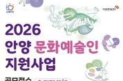 【뉴스라이트 = 이양지 기자】 안양문화예술재단은 지역 예술인의 창작활동을 지원하고 문화예술 진흥을 도모하기 위한 ‘2026년 안양 문화예술인 지원사업’ 희망자를 오는 16일 17시까지 공개 모집한다. 이번 공모는 안양에서 활동하는 예술인과 예술단체를 대상으로 하며, 안정적인 창작환경 조성과 더불어 경기도 내 우수 예술인의 안양 유입을 통해 시민들에게 보다 풍성한 문화예술 향유 기회를 제공하는 것을 목적으로 한다. 총 사업 규모는 3억 2,630만원이며, 이 중 지원금은 2억 7,400만원이다. 특히 올해는 ‘정산 간소화’ 제도를 시범 도입하여 예술인의 행정부담을 줄이고 창작활동에 더욱 집중할 수 있는 환경을 조성할 계획이다. 재단 관계자는 “이번 지원사업을 통해 지역 예술생태계가 활성화되고, 시민들의 문화향유 기회가 확대됨으로써, 안양이 보다 풍요로운 문화도시로 도약하길 기대한다”고 밝혔다.
