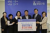 【뉴스라이트 = 조용은 기자】 수원시 팔달구와 구 지역사회보장협의체는 지난 15일 구청장실에서 ‘팔달구 이웃사랑 바자회’ 성금 전달식을 가졌다. 지난 9월 23일 팔달구 지역사회보장협의체가 주관하고, 관내 10개 동 지역사회보장협의체 및 사회복지시설, 유관기관이 힘을 모아 추진한 ‘팔달구 이웃사랑 바자회’ 행사를 통해 전달된 성금은 총 252만 1천원으로, 해당 성금은 팔달구 취약계층을 지원하기 위한 구 특화 사업에 사용할 예정이다. 권남호 구 지역사회보장협의체 공동위원장은 “이웃의 어려움을 함께 나누기 위해 한마음으로 참여해주신 분들께 감사드린다”며, “이번 성금이 지역 내 어려운 이웃들에게 따뜻한 희망으로 전해지길 바란다”고 말했다. 이상균 팔달구청장은 “팔달구민의 자발적인 참여와 나눔이 지역사회를 더욱 따뜻하게 만든다”며, “앞으로도 민관이 함께하는 복지공동체 실현을 위해 적극 노력하겠다”고 밝혔다.