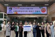【뉴스라이트 = 조용은 기자】 수원시여성리더회가 16일 수원시청 본관 1층에서 저소득가정을 위한 후원금 300만 원을 수원시에 전달했다. 후원금은 형편이 어려운 가정에 지원할 예정이다. 전달식에는 김은주 수원시 여성가족국장, 김수민 수원시여성리더회 총회장 등이 참석했다. 김수민 총회장은 “우리 여성리더회 임원진과 회원들의 따뜻한 마음을 모았다”며 “형편이 어려운 가정에 그 마음이 잘 전달되길 바란다”고 말했다. 수원시여성리더회는 수원시 양성평등기금 사업으로 운영되는 ‘수원시 여성지도자대학’ 수료생들로 구성된 단체다. 여성의 권익 증진과 복지 향상, 지역사회 발전을 목표로 2004년 12월 출범했다. 수료생 1240명이 활동 중이며, 매년 저소득가정 후원금과 물품 기부, 한부모가정 지원, 지역 복지시설 봉사활동 등 다양한 사회공헌 활동을 하고 있다.