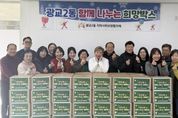 【뉴스라이트 = 조용은 기자】 광교2동 지역사회보장협의체는 지난 12월 1일부터 15일까지 2주간 관내 독거노인을 위한 생활용품 등 선물 150박스를 완성한 후, 18일 박남숙 광교2동장과 이종금 지역사회보장협의체 위원장 및 위원들은 '함께 나누는 희망박스'전달식을 가졌다. 12월 따뜻한 이웃돕기로 광교2동 지역사회보장협의체가 주관하여 지역사회보장협의체 위원들이 소속된 기관에서 각각 햇반, 라면, 간식, 쌀 등 생필품을 모집했다. 광교2동 행정복지센터 내에도 '함께 나누는 희망박스' 트리를 설치하여 광교2동 주민자치회, 통장협의회 등 각 단체장 및 단체원, 어린이집 학부모 등 지역주민 모두가 동참한 연말 이웃돕기 '함께 나누는 희망박스'150개를 완성했다. 이종금 광교2동 지역사회보장협의체 위원장은 “연말 '희망박스'와 함께하는 이웃돕기에 동참해주셔서 감사드리고, 한집 한집 방문하여 소중한 마음이 전달될 수 있도록 노력하겠다”고 말했다. 또한, 박남숙 광교2동장은 “광교2동의 어려운 이웃을 위하여 좋은 취지로 함께한 '희망박스'로 따뜻한 마음을 나눠주신 것에 대해 진심으로 감사드린다”고 말했다.
