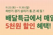 【뉴스라이트 = 조용은 기자】 경기도 공공배달앱 배달특급이 2025년 하반기 경기살리기 ‘통 큰 세일’에 합류한다. 경기도주식회사는 오는 30일 일요일까지 배달특급 전체 회원을 대상으로 배달특급 입점 가맹점에서 사용할 수 있는 5천원 할인 쿠폰을 제공한다고 23일 밝혔다. 해당 프로모션은 배달특급 애플리케이션 내 상반 ‘통 큰 세일’ 배너를 통해 쿠폰을 내려받아 결제 단계에서 사용할 수 있다. 예산 소진 시까지 회원당 매일 1회 내려받아 사용 가능하다. 배달특급은 지난 상반기에도 경기도와 경기도시장상권진흥원이 추진한 ‘2025년 상반기 경기 살리기 통 큰 세일’에 참여한 바 있다. 당시 배달특급은 경기도 지역화폐가 연동되는 공공배달앱 3사(배달특급, 땡겨요, 먹깨비) 가운데 가장 먼저 할인 쿠폰을 소진시켰고, 가장 많은 30억 원의 거래액을 기록하며 소비자와 소상공인의 상생을 이끌어 낸 바 있다. 한편, 배달특급의 모든 이벤트는 해당 상단 배너 기능을 통해 확인 가능하며, 지역에 따라 할인 조건과 금액이 달라질 수 있어 사전 확인이 필요하다.
