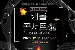 【뉴스라이트 = 조용은 기자】 경기도 오산시 소리울도서관은 연말을 맞아 시민들에게 겨울 감성을 선사하는 '미리 크리스마스 – 캐롤 콘서트 with 캔들'을 오는 12월 7일 오후 3시 소리울아트리움에서 개최한다고 밝혔다.