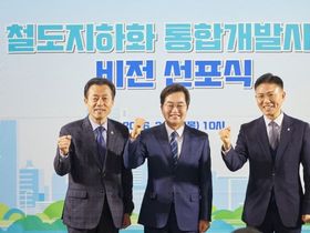 【뉴스라이트 = 조용숙 기자】 경기도의회 건설교통위원회 김성수 의원(더불어민주당, 안양1)은 12일 안양역에서 열린 ‘철도지하화 통합개발사업 비전선포식’에 참석하여 경부선 안양 구간의 조속한 철도지하화사업 대상지 선정을 촉구하고 강력한 추진 의지를 피력했다. 경기도가 주관한 이날 선포식에는 김성수 의원을 비롯해 김동연 경기도지사, 이계삼 안양시 부시장, 지역 주민들이 참석했다. 행사에서는 ‘지도에는 있지만 쓸 수 없었던 지상 철도 부지를 도민에게 돌려드린다’는 비전과 함께 경부선 안양 구간 철도지하화 사업의 추진 방향이 발표됐다. 김성수 의원은 축사를 통해 “경기도의회는 전국 최초로 철도지하화사업기금 조례를 제정하는 등 경기도와 안양시가 경부선 철도지하화사업을 힘 있게 추진할 수 있는 제도적 기반을 마련하고 있다”면서 “철도지하화사업 시작까지 ‘종합계획 선정’ 마지막 한 걸음을 남겨둔 만큼, 경기도의회-경기도-안양시가 하나 되어 멈춤 없이 노력해 온 결실을 맞이하자”고 목소리를 높였다. 이어 김 의원은 “수십 년간 안양을 동서로 단절시켰던 경부선 철도는 그동안 지역 발전의 큰 걸림돌이었다”고 지적하며, “이번