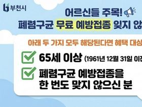 "65세 이상은 무료 폐렴구균 예방접종 꼭 하세요"