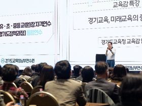 【뉴스라이트 = 한경준 기자】 경기도교육청남부연수원이 경기교육정책의 이해를 바탕으로 학교 혁신을 주도할 리더 양성을 위해 ‘2026 유·초·중등 교(원)장 자격연수(경기도정책과정)’를 운영한다. 7일 신텍스(SINTEX)에서 열린 이번 연수는 17일까지 기수별 일정에 따라 순차적으로 진행되며 유·초·중등 교(원)장 자격연수 대상자 556명이 참여했다. 연수는 유·초·중등 통합연수(4시간)와 학교급별 집합연수(16시간)로 구성해 총 20시간 과정으로 운영된다. 연수의 주요 내용은 ▲미래학교 설계와 학교장의 역할 ▲공감과 소통 중심 리더십 ▲경기교육 정책 이해 및 비전 수립 등으로 경기교육 정책을 현장에 적용할 수 있는 내용으로 구성했다. 이날 특강에 나선 임태희 경기도교육감은 “교육은 학생들이 행복하게 살 수 있는 준비를 시켜주는 것이기에 교육청의 리더가 되실 분들은 교육이 지향해야하는 것에 대한 확고한 공감대를 가지고 있어야한다”며 “경기도에서 교육하는 학생들이 교육 때문에 경기도를 떠나지 않도록, 그리고 교육 때문에 경기도로 오고 싶다는 말을 듣는 것이 경기도 교육이 바람직한 상황으로 가는 것이고