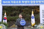 【뉴스라이트 = 박현서 기자】 이상일 용인특례시장은 6일 처인구 양지면 대대리 ‘자유수호희생자위령탑’에서 열린 제45회 자유수호희생자 합동위령제에 참석해 희생자들을 추모했다. 이날 행사엔 이상일 시장을 비롯한 박창무 한국자유총연맹 용인시지회장 등 지역 내 단체 관계자와 시민 50여 명이 참석했다. 행사는 희생자를 기리기 위한 추도 의식, 추념사·추도사, 조가 연주와 제창, 진혼무, 헌화 순으로 진행됐다. 이상일 시장은 추도사에서 “고대부터 자유는 인간에게 가장 중요한 가치로 자유를 얻지 못하면 우리는 평등해질 수가 없다”며 “선배 세대들이 목숨을 바치면서 자유를 지켜낸 모습만 봐도 자유는 그냥 얻어진 것이 아니다”라고 강조했다. 이 시장은 “우리가 매년 위령제를 지내는 것은 1990년 9월 21일 희생당하신 분들의 고귀한 넋을 우리가 면면히 잘 이어받아 선배 세대가 소중하게 지킨 이 나라를 더욱더 발전시켜 후배 세대들에게 물려주기 위함이라고 생각한다”며 “호국영령의 넋이 하늘나라에서도 늘 평안을 누리시길 기원드린다”고 했다. 자유수호희생자위령탑은 1950년 9월 21일 용인·화성·수원 등지에서 끌려