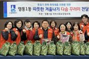 【뉴스라이트 = 조용은 기자】 영통1동 지역사회보장협의체는 지난 22일 겨울철 한파에 취약한 독거노인의 건강과 안전을 위해 관내 독거노인 15명을 대상으로 기모 실내복 세트와 핫팩을 전달하고 안부를 살피는 나눔 활동을 진행했다. 이번 지원은 추운 겨울을 홀로 보내는 어르신들이 조금이나마 따뜻하고 건강하게 겨울을 날 수 있도록 돕기 위해 마련됐으며, 협의체 위원들은 각 가정을 방문해 물품을 전달하고 생활 불편 사항과 건강 상태를 직접 확인했다. 김가희 지역사회보장협의체 민간위원장은 “작은 나눔이지만 어르신들께서 따뜻한 겨울을 보내는 데 도움이 되길 바란다”며 “앞으로도 지역 내 취약계층을 위한 지속적인 관심과 지원을 이어가겠다”고 전했다. 신한길 영통1동장은“추운 겨울일수록 이웃의 관심과 돌봄이 더욱 중요하다”며 “이번 나눔을 통해 어르신들께서 조금이나마 따뜻함과 위로를 느끼시길 바라고, 앞으로도 주민 모두가 함께하는 따뜻한 지역사회를 만들기 위해 최선을 다하겠다”고 말했다.