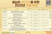 【뉴스라이트 = 김정민 기자】 성남시는 오는 10월 20일부터 12월 29일까지 중원구 하대원동 1인 가구 힐링스페이스에서 총 150명이 참여하는 7개 과목(과목별 20~30명)의 특강을 연다. 이번 특강은 문화·정서·예술 등의 분야에서 1인 가구의 자기 계발 역량을 높이고, 사회적 관계망 확대를 지원하기 위해 마련된다. 운영 과목은 △인지기능 유지 등 성공적 노화 △감정 코칭 △힐링 아트 △힐링 노래 △보드게임 △시네마 토크 △독서토론 등이다. 과목별 전문 강사를 초빙해 각각 4회 과정으로 특강을 진행한다. 성남시 거주 1인 가구면 누구나 참여할 수 있다. 참여 신청은 성남시 평생학습 통합플랫폼 ‘배움숲’이나 전화, 방문 등 다양한 방법으로 할 수 있다. 과목별 선착순 접수하며, 수강료는 무료다. 단, 재료비는 자부담이다. 성남시 힐링스페이스는 지난 2023년 7월 18일 전국 첫 직영 체제로 설치된 1인 가구 지원시설이다. 성남지역 38만3004가구의 35.1%를 차지하는 1인 가구(13만4409가구)를 정책적으로 지원하는 역할을 한다. &nbs