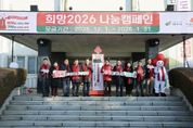【뉴스라이트 = 김정민 기자】 지난 12일 여주시와 경기 사회복지공동모금회는 연말연시 나눔문화 확산을 위한'희망2026 나눔캠페인'의 시작을 알리는 사랑의 온도탑 제막식을 개최했다. 이번 캠페인의 슬로건은 “행복을 더하는 기부, 기부로 바꾸는 여주”로 이충우 여주시장, 박두형 여주시의회 의장 및 시의원, 김효진 경기 사회복지공동모금회 사무처장 등 10여명이 참석하여 제막식과 슬로건 피켓팅을 통해 홍보활동을 진행했다. '희망2026 나눔캠페인'은 2025년 12월 1일부터 2026년 1월 31일까지 62일간 여주시 지정기탁 모금액 4억원을 목표로 각 읍면동 및 본청에서 모금을 접수하며, 목표액의 1퍼센트인 4백만원의 성금이 모금될 때마다 사랑의 온도탑의 온도가 1℃씩 올라간다. 집중모금기간동안 모금된 성금 등은 사회복지공동모금회를 통해 여주시 지정기탁금 계좌로 적립되어 관내 취약계층 및 사회복지시설 등을 위한 복지사업의 재원으로 소중히 사용될 예정이며, 많은 시민들의 관심과 참여를 촉구하는 뜻깊은 자리였다.