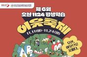 【뉴스라이트 = 조용은 기자】 오산시는 오는 11월 11일부터 11월 24일까지 2주간 ‘2025년 제6회 1124 오산 평생학습 이웃축제’를 개최한다고 밝혔다. ‘1124’는 ‘나 혼자(1혼자1혼자) 즐기는 평생학습에서 이웃사촌(2웃4촌)이 함께하는 평생학습’을 의미하며, 올해 축제는 ‘오산, 이웃으로 꽃피다’를 주제로 40여 명의 이웃축제 추진단이 직접 기획과 운영에 참여해 시민 주도의 학습 축제로 꾸며질 예정이다. 이번 축제는 ▲징검다리 이웃초대 ▲동평생학습센터 ▲성인문해 글꽃마당 ▲브릿지 클래스 등 4개 분야, 총 180여 개의 프로그램으로 구성되며, 관내 220여 개 징검다리교실을 비롯한 다양한 평생학습 공간에서 진행된다. 특히 ‘징검다리교실’은 집 앞 10분 거리 내에서 시민 누구나 학습 공간으로 이용할 수 있는 공유형 학습 플랫폼으로, 2024년 전국평생학습도시 페스티벌에서 ‘좋은 정책 어워즈’ 장려상을 수상하는 등 전국적으로 우수한 정책으로 평가받고 있다. 축제 프로그램 참여 신청은 11월 3일부터 오산시 교육포털 ‘오산e’를 통해 선착순으로 접수할 수 있으며, 시민 누구나 참여 가능