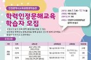 【뉴스라이트 = 이세현 기자】 인천광역시교육청평생학습관은 2월 10일부터 13일까지 ‘2026년 초등·중학 학력인정 문해교육’ 학습자를 모집한다 ‘학력인정 문해교육’은 비문해 및 저학력 성인을 대상으로 초·중학교 학력 취득 기회를 제공하기 위해 마련됐으며, 초등 및 중학 과정을 각 1~3단계로 세분화하여 3월 3일부터 12월 14일까지 운영한다. 평생학습관 관계자는 “이번 교육을 통해 학습자들이 배움의 즐거움을 되찾고, 학력 취득을 통해 자존감을 높일 수 있기를 기대한다”고 말했다. 모집에 대한 자세한 사항은 평생학습관 기획정보부로 문의하면 된다.