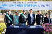 【뉴스라이트 = 김정민 기자】 여주시는 11월 3일 신륵사 맨발광장에서 여주시와 여주시맨발걷기운동본부와 업무협약을 체결하고 현장간담회를 성황리에 마쳤다고 밝혔다. 이번 협약으로 여주시 △맨발걷기 활성화 및 상호 협력체계 구축 △맨발걷기 문화 확산을 위한 지원 및 공동사업 활성화 △맨발걷기길 조성 및 유지관리 협력 △그 밖의 맨발걷기 관련 협력 및 정보 공유 등 상호 업무 협력 등에 나서기로 했으며, 여주시와 여주시맨발걷기운동본부가 협력함으로써, 여주시가 ‘맨발로 걷기 좋은도시’로 더욱 발전하는 계기가 될 것으로 기대된다. 협약식에는 150여명의 시민과 이충우 여주시장, 여주시맨발걷기운동본부 우정식 대표 외에도 여주시맨발걷기운동본부 박용남회장, 여주시의회 박시선 부의장 등도 함께하여 협약식의 의미를 더했다. 협약식 후 이어진 현장 간담회에서는 맨발 걷기에 대한 높은 관심을 반영하듯 시민들의 생생한 의견을 들을 수 있었다. 시민들은 맨발 걷기를 통하여 경험한 건강 개선 효과 등을 공유하며 맨발 걷기장 확대 조성에 대한 감사의 마음을 전하기도 하고, 기존 맨발길에 대한 보완사항 요청이나 앞으로의 개선 방안 등 다양