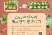 【뉴스라이트 = 이세현 기자】 인천광역시교육청중앙도서관 청소년문화공간 다누리는 청소년의 기후 위기 인식 제고와 생태 전환 교육을 위한 ‘2025년 다누리 청소년 텃밭 가꾸기’ 프로그램을 운영한다. 이번 프로그램은 청소년이 직접 농작물을 재배하며 농업의 가치와 기후 위기 대응 역량을 배우는 체험형 교육으로 ▲절기별 작물 심기 ▲유기농 병충해 방제법 ▲텃밭 곤충 관찰과 세밀화 그리기 ▲기후 위기에 대응하는 실천 방법 및 미래의 농업 ▲재배한 작물로 동치미 담기 등을 운영하며 활동에 참여한 학생에게는 봉사 시간이 인정된다. 프로그램은 지역 단체인 ‘인천도시농업네트워크’와 연계해 운영하며, 직접 키운 농작물로 만든 음식을 인천외국인종합지원센터에 기부할 예정이다. 운영 기간은 8월 23일부터 11월 8일까지 매주 토요일 오전 10시부터 12시까지 10회에 거쳐 진행되며, 참가 신청은 7월 29일부터 다누리 누리집에서 선착순 가능하다. 자세한 내용은 다누리 누리집 또는 전화 문의하면 된다.