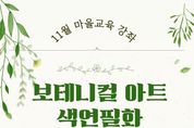 【뉴스라이트 = 이세현 기자】 인천광역시교육청신트리도서관은 11월 교육기부 미술 프로그램 ‘보테니컬 아트 색연필화’를 운영하며, 참가자 10명을 10월 24일 오전 10시부터 모집한다. 이번 프로그램은 성인을 대상으로 색연필을 활용한 보테니컬 아트의 기본기를 배우고, 식물의 세밀한 관찰력과 색채 감각을 향상시키기 위해 마련됐으며, 수업은 11월 4일부터 25일까지 매주 화요일 오후 1시 30분부터 3시 30분까지 4회에 걸쳐 진행된다. 참가 신청은 신트리도서관 누리집에서 선착순 진행되며, 자세한 사항은 마을교육지원과로 문의하면 된다.