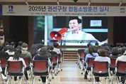 【뉴스라이트 = 조용은 기자】 수원시 권선구는 지난 28일 수원남부소방서(서둔119안전센터)와 권선구 직원들과 함께 공공기관 합동소방훈련을 실시했다. 이날 훈련은 구청 전 직원을 대상으로 실시했으며, 화재 대피 요령 동영상 시청 후 실제 화재 발생 시 자위소방대의 화재대응 역할을 수행하는 방식으로 진행됐다. 훈련 내용은 구청 내에서 화재가 발생한 것으로 가정하여 유도반, 구조반, 진압반, 지휘반으로 편성된 자위소방대가 반별 역할 수행을 통해 직원 및 내방객들의 안전하고 신속한 대피 유도 과정이 주요 내용이었으며, 대피 훈련이 끝난 후에는 소화기 사용법 및 화재 발생 시 행동 요령과 주의사항 등에 대한 안전교육이 진행됐다. 김종석 권선구청장은 “화재 등 응급상황에 대한 자위소방대의 역량을 향상시키고, 모든 직원들이 신속하게 대응할 수 있는 능력을 강화해 나갈 것이다. 앞으로도 정기적인 소방훈련과 지속적인 교육을 통해 청사 안전관리에 힘쓰겠다”라고 말했다.