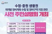 【뉴스라이트 = 김정민 기자】 성남시는 오는 12월 17일 수진2구역을 시작으로 수정·중원 생활권 5개 구역의 재개발 정비계획 수립 및 정비구역 지정에 대한 사전 주민설명회를 순차적으로 개최한다. 이번 주민설명회는 지난 9월 23일 착수한 수진2, 태평2‧4, 산성, 단대, 상대원1‧3 등 5개 구역의 ‘재개발 정비계획 수립 및 정비구역 지정 용역’을 통해 검토된 각 구역의 정비계획안과 추정분담금에 대한 주민 의견을 청취하기 위해 마련됐다. 정비계획안에는 각 구역의 토지이용계획, 도시계획시설 및 생활인프라(SOC) 확충 방안, 건축물 계획 등이 포함된다. 사전 주민설명회 일정은 17일 오전 10시 수진2구역, 오후 2시 태평2‧4구역을 비롯해, 19일 오후 2시 산성구역과 22일 오후 2시 단대구역 설명회가 수정구청 대회의실에서 진행된다. 24일 오후 2시에는 상대원1‧3구역 설명회가 중원구청 대회의실에서 열린다. 주민설명회는 별도의 사전 등록 없이 해당 구역 토지등소유자를 비롯해 재개발 사업에 관심 있는 주민 누구나 참석할 수 있다. 신상진 성남시장은 “정비계획 수립 단계에서 주민과 의견을 나누는