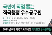 【뉴스라이트 = 한경준 기자】 경기도교육청이 공공의 이익을 높인 적극행정 우수공무원 선정을 위해 2025년도 하반기 대국민 심사를 실시한다. 도교육청은 창의적이고 능동적인 행정을 펼친 각 기관의 추천 사례를 접수해 1차 예선심사에서 우수사례 15건을 선정했다. 이를 대상으로 1월 26일부터 30일까지 ‘소통24’누리집에서 국민이 참여하는 온라인 투표 방식의 대국민 심사를 진행한다. 참여자는 1인당 3건의 우수사례에 투표할 수 있다. 본선 진출자는 예선심사 점수 60%와 국민투표 결과 40%를 합산해 최종 결정된다. 선발된 공무원에게는 교육감 표창과 포상금, 특별승급의 인사상 가점부여 등 다양한 특전을 제공할 계획이다. 이번 선발은 단순한 성과 평가를 넘어 적극행정의 모범사례를 널리 알리고, 공직사회 전반에 적극행정 문화를 확산시키는 의미가 있다. 특히 국민이 직접 우수공무원을 선정함으로써 정책 수요자의 관점이 반영된다는 점에서 공정하고 투명한 심사 절차가 마련될 것으로 기대된다. 도교육청은 앞으로도 국민이 체감하는 변화를 만들어낸 공무원의 노력을 널리 알리고, 적극행정을 일