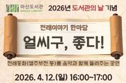 【뉴스라이트 = 이세현 기자】 김포시 마산도서관은 제4회 도서관의 날을 맞아 오는 4월 12일 오후 4시부터 5시까지 마산도서관 3층 다목적실에서 전래이야기 한마당 '얼씨구, 좋다!'를 운영한다. 4월 12일은 '도서관법'에 따라 도서관에 대한 국민의 이해와 관심을 높이고 이용을 촉진하기 위해 지정된 ‘도서관의 날’이다. 시는 이를 기념해 가족 단위의 관람객이 즐길 수 있는 공연을 마련했다. 공연은 밴드 ‘판’이 진행하며, 건반과 베이스, 기타, 장구 등 다양한 악기를 활용해 전래동화를 음악으로 재구성한 무대다. 혹부리 영감, 별주부전 등 친숙한 이야기를 노래와 연주로 풀어내며, 옛 동요와 국악 장단을 활용한 창작곡도 함께 선보일 예정이다. 이번 공연은 김포시민 100명을 대상으로 하며, 3월 24일 오전 10시부터 김포시 통합예약 홈페이지를 통해 신청할 수 있다.
