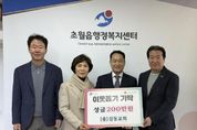 【뉴스라이트 = 김정민 기자】 광주시 초월읍 선동리에 위치한 삼동교회는 지난 12일 경기 사회복지공동모금회를 통해 성금 200만 원을 초월읍에 기탁했다. 이번에 기탁된 성금은 초월읍 지역 내 저소득 가구 등 취약계층 지원에 사용될 예정이다. 오병철 담임목사는 “지역의 어려운 이웃들이 조금이나마 따뜻한 일상을 보내는 데 도움이 되길 바란다”며 “앞으로도 지역사회와 함께하는 교회가 되도록 노력하겠다”고 말했다. 이에 대해 이학순 읍장은 “따뜻한 나눔을 실천해 주시는 삼동교회에 깊이 감사드린다”며 “기탁해 주신 성금은 도움이 필요한 이웃들에게 소중히 전달하겠다”고 밝혔다.