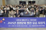 【뉴스라이트 = 조용은 기자】 수원특례시는 18일 팔달문화센터 예당마루홀에서 ‘2025년 정원문화 발전 유공 시상식’을 열었다. 정원문화 발전에 기여한 시민과 단체 등에 수원시장상(47개)과 수원시의회 의장상(7개)을 수여했다. 시상은 표창장·감사패 수여, 시민정원 경연대회, 베스트 관리상, 올해의 정원인상 등 분야별로 진행됐다. 지난 10월 효원공원에서 열렸던 ‘2025년 수원시 시민정원 경연대회’ 수상팀들을 시상했다. 하나의 물방울이 만들어내는 무한한 생명의 파장을 표현한 ‘완뚝원정대’의 ‘리플(ripple) 가든’이 대상을 받았다. 어린 꽃이 꿈꾸는 산의 이미지를 담은 ‘진달래동산 꽃뫼’ 팀의 ‘어린 꽃이 꿈꾸는 뫼(산)’이 최우수상, 빛과 생명의 흐름을 표현한 ‘빛나게’ 팀의 ‘Flowing Light, Flowering Life(플로잉 라이트, 플라워링 라이프’가 우수상을 받았다. 이재준 수원시장은 “도심 속 열린 정원은 시민에게 휴식처가 되고, 기후 위기 대응에는 힘이 된다”며 “정원을 가꾼 수상자 노력에 감사하며 시민 일상에 초록이 늘도록 지원을 이어가겠다”고 말했다.